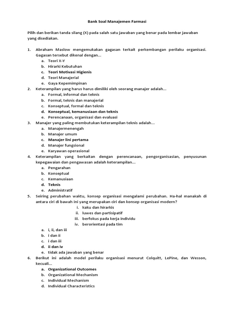 Bank Soal Manajemen Farmasi Pdf